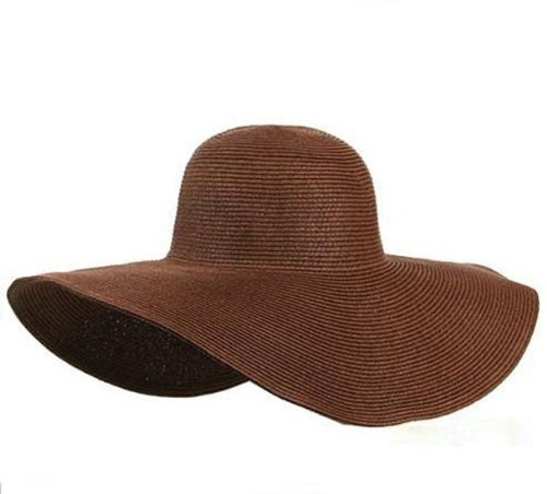 Aolevia Grand Chapeau de Paille Femme Style de Hawaïen à Large Bord Couleur Pur Pour ÉtéTaille Unique-Café