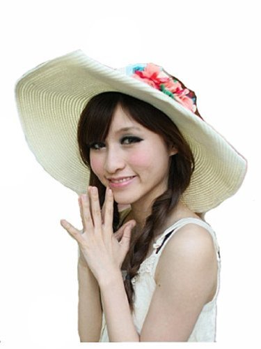 Mode femmes Chapeau De Paille Large bord Été Plage Anti soleil Cadeau Beige 381